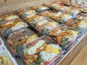 観光客が少なく、地元の方が利用する小さな商店では、大きなお弁当やおにぎりがリーズナブルな値段で売られています。コンビニとは違い、地元ならではの食材を使ったお弁当があって、見ているだけでも楽しいです。価格も500〜700円台でボリューム満点のものが多く、昼ごはんや軽食にぴったりです。