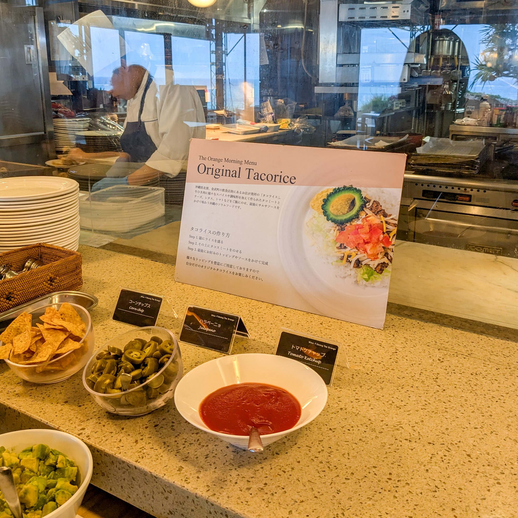 自分でトッピングを組み合わせるスタイルです。沖縄らしいメニューで朝から気分が上がります。