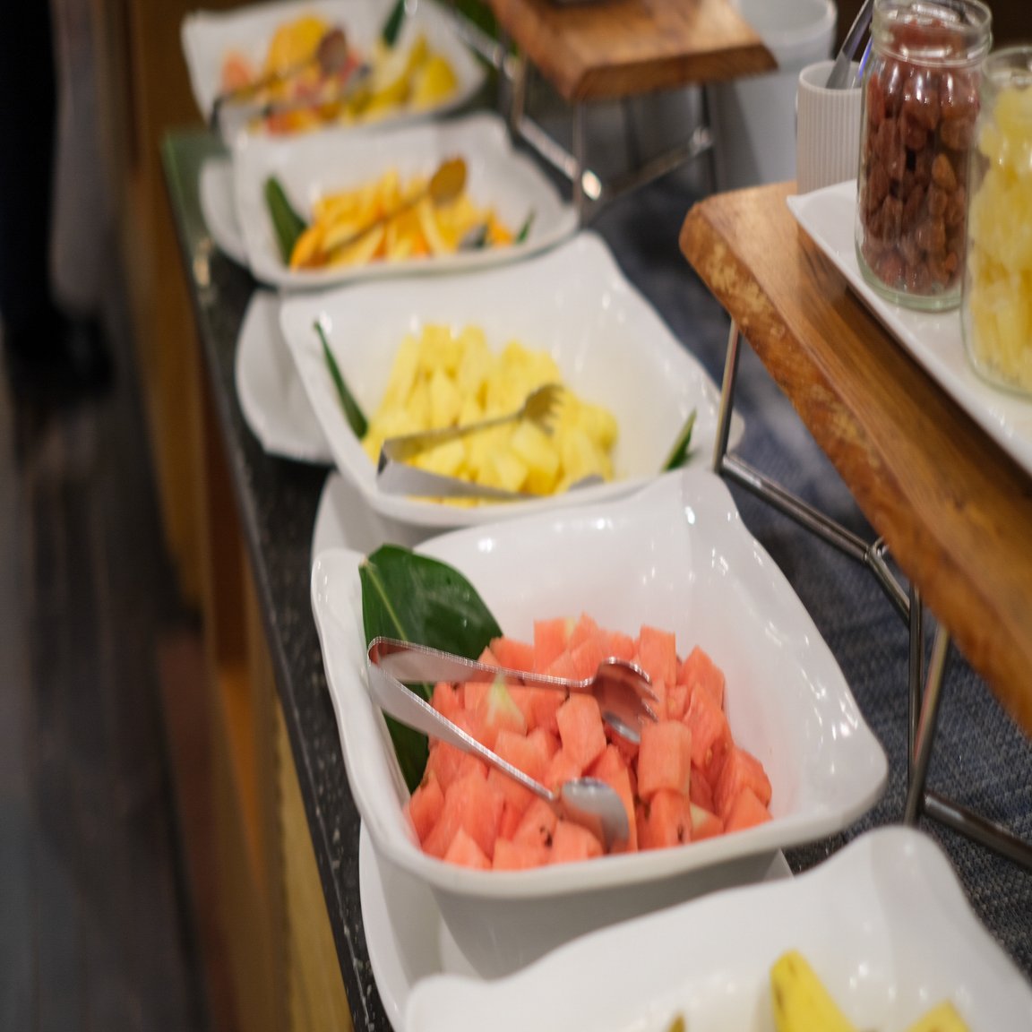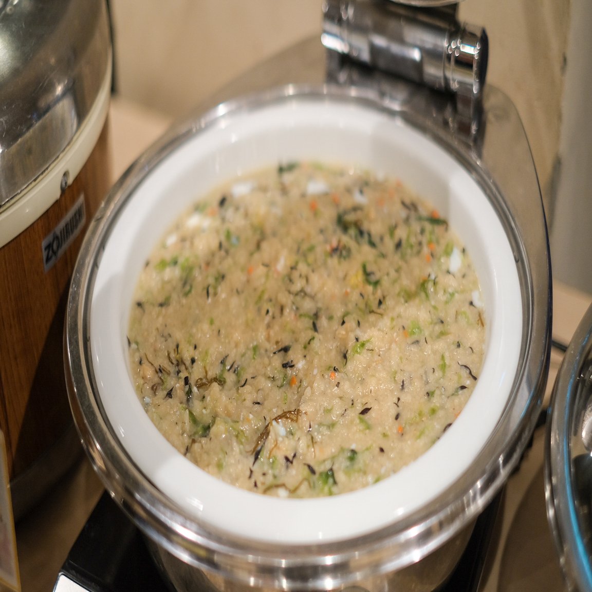 メニュー全体のラインナップとしては標準的です。ただ、おばぁが作るポーたまとカチュー湯のライブキッチンは、他のどのホテルの朝食ビュッフェにも見当たらない唯一無二の体験です。