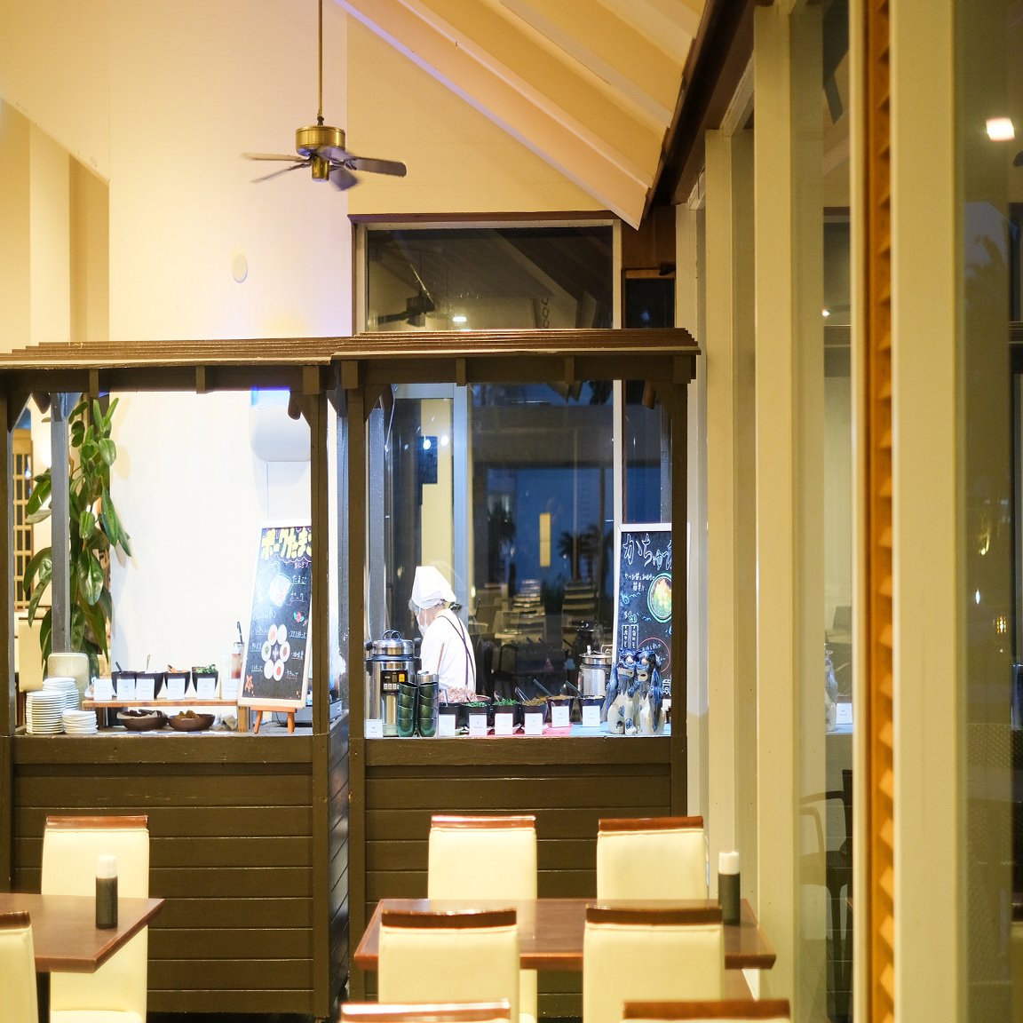オクマプライベートビーチ&リゾートの朝食ビュッフェは、おばぁが作るポーたまとカチュー湯のライブキッチンが最大の魅力です。